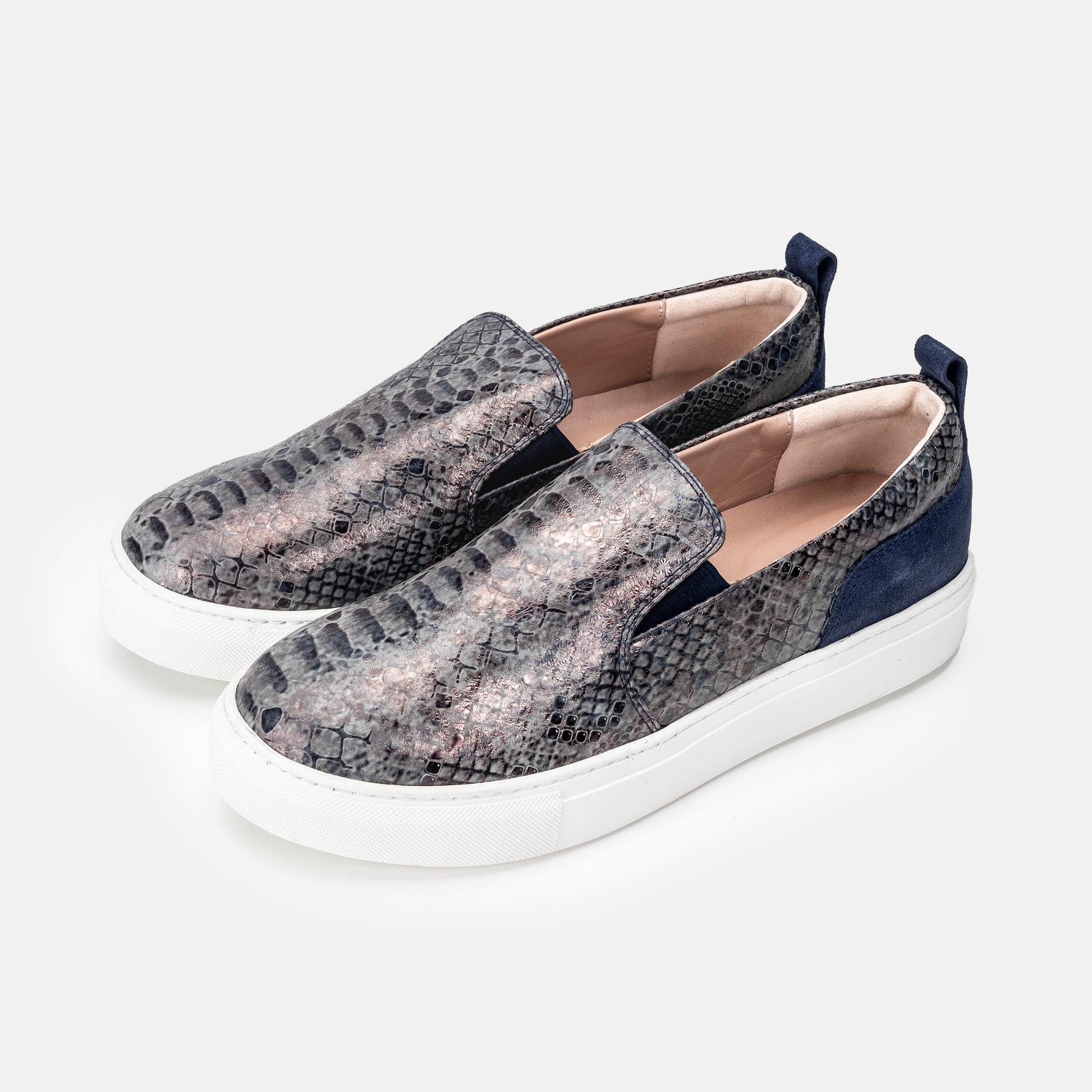 Volzak 072 Basket en cuir Bleu marine Serpent